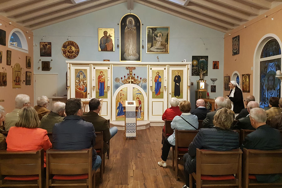 Mit viel Herzblut und Eigenleistung hat Schwester Michaela in den letzten Jahren eine byzantinische Kapelle in Weitnau erbaut. Wir waren eingeladen, die Kapelle und den dazugehörigen Kräutergarten zu besichtigen und dabei einiges über die vielfältigen Aufgaben des Vereins zu erfahren.