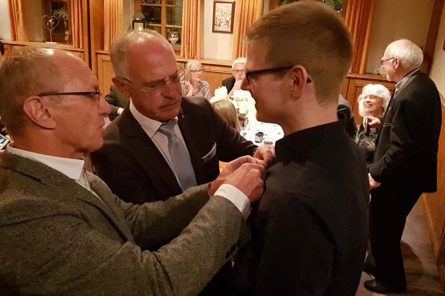 Zur traditionellen Weihnachtsfeier trafen sich die Lionsfreunde in diesem Jahr im Gasthof Kreuz in Wiggensbach. Besonderes Highlight an diesem Abend war die feierliche Aufnahme unseres neuen Mitglieds Daniel Hunold, Apotheker der Apotheke im Lyzeum. Gemeinsam erlebten wir einen kurzweiligen Abend mit guten Gesprächen, Geschichten und Gedichten und einer nicht ganz ernst gemeinten Einlage zum Thema „Schenken“.