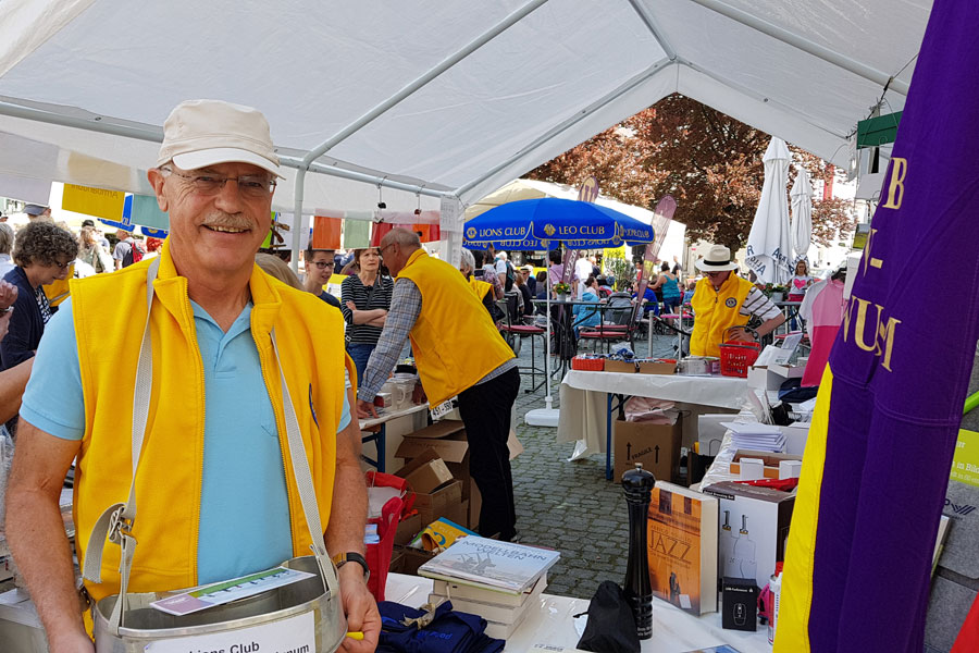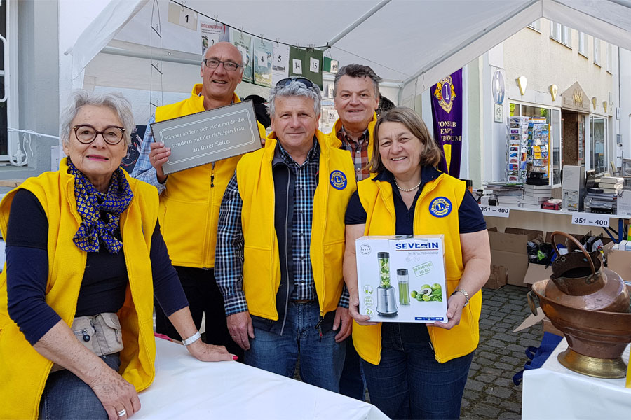 Bei strahlendem Sonnenschein starteten die Lionsfreunde eine ihrer Haupactivities – die Durchführung der Tombola anlässlich der Eröffnung des Jazz-Frühlings in Kempten.