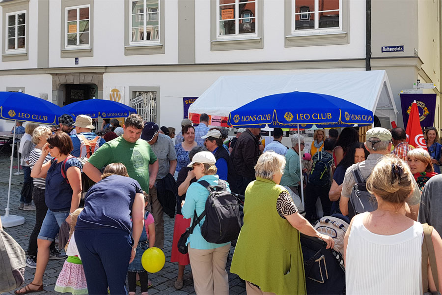 Der Tag der Musik ist alljährlich ein fester Termin in unserem Kalender. Bei der vom City Management Kempten organisierten Veranstaltung spielen über 30 Bands in der Kemptener Innenstadt und verzichten für einen guten Zweck auf ihre Gage. Dabei nehmen die Kemptener Serviceclubs eine wichtige Rolle ein. Die Mitglieder, ausgestattet mit einem Spendenhut, sammeln gemeinsam und clubübergreifend für einen guten Zweck. Über 15.000 Euro konnten im Jahr 2018 an ProFamilia und die Kinderbrücke übergeben werden.