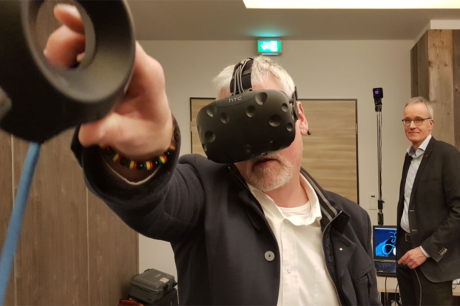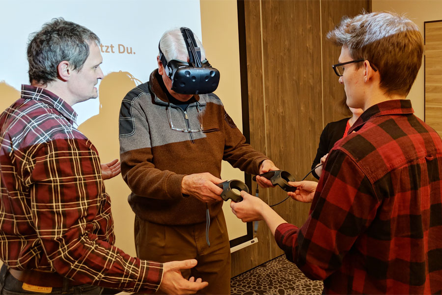 Im Anschluss an den Vortrag durfte sich jeder noch persönlich von der Faszination der virtuellen Welt überzeugen. Dabei waren die Erfahrungen vielfältig. Wer sich traute, konnte mit dem virtuellen Aufzug in den 96. Stock fahren und auf einer Holzplanke hoch über dem Abgrund stehen. Nicht ganz so aufregend aber genauso faszinierend war das kreative Zeichnen und Malen und das Erschaffen von virtuellen Werken. Und als beeindruckend beschrieben alle den mitgebrachten 3D-360-Grad Film, bei dem die Szenen so lebendig wirkten, als wäre man mittendrin.