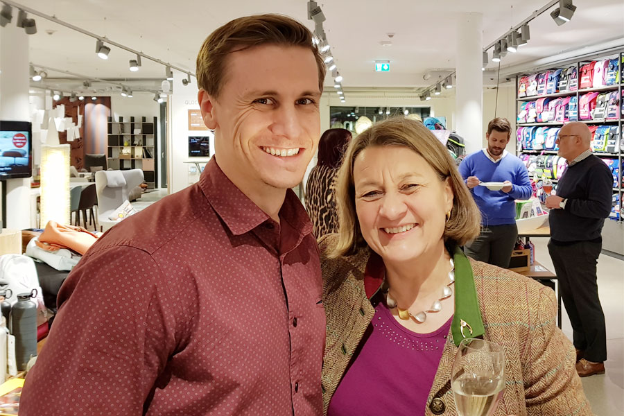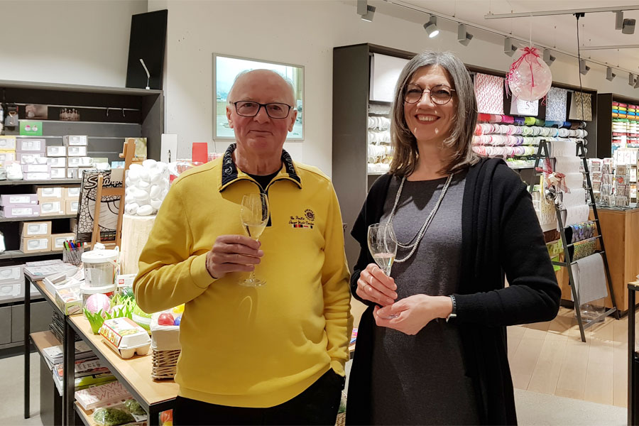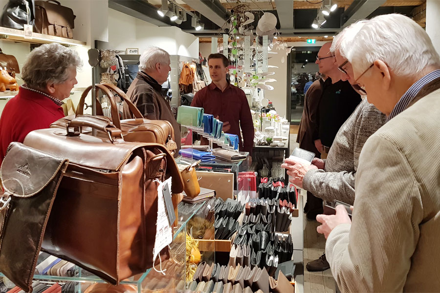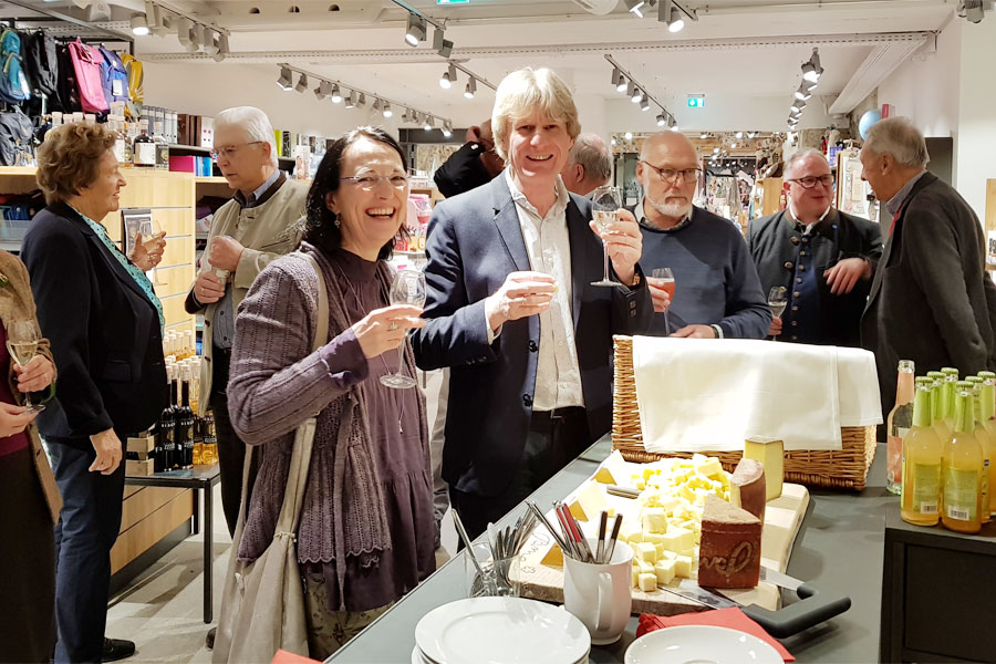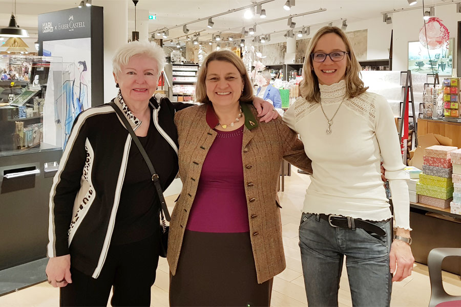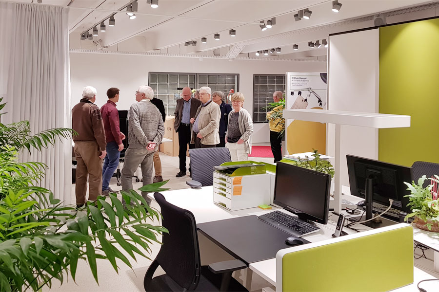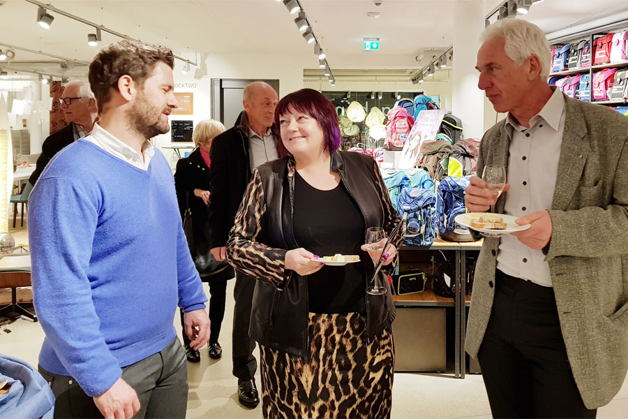 Danach führten Michael und Christian Pickert durch den Abend und nahmen uns mit auf eine kleine Zeitreise, beginnend mit Jakob Daniel Staehlin, der 1855 an der Reichsstraße in Kempten eine Buchbinderei mit Schreibwarengeschäft eröffnete. Heute führt die Familie Pickert in der 5. und 6. Familiengeneration die Firma. Es gab eine Führung hinter die Kulissen mit einem Bericht über die Architektur und die Ziele des Neu- und Ausbaus des Firmenstammhauses aus dem Jahr 2015.